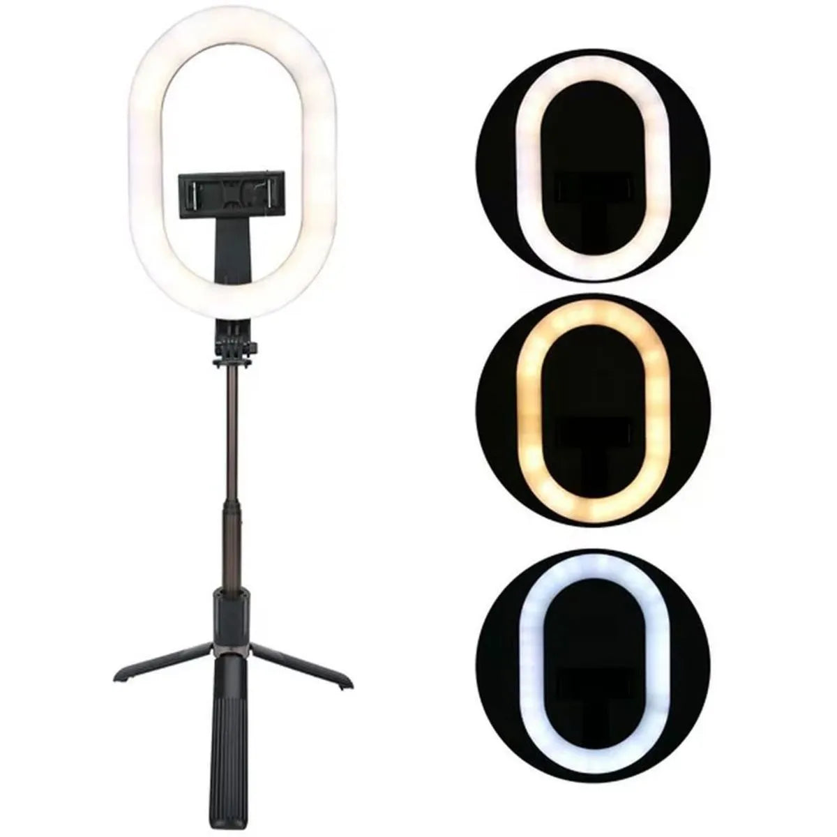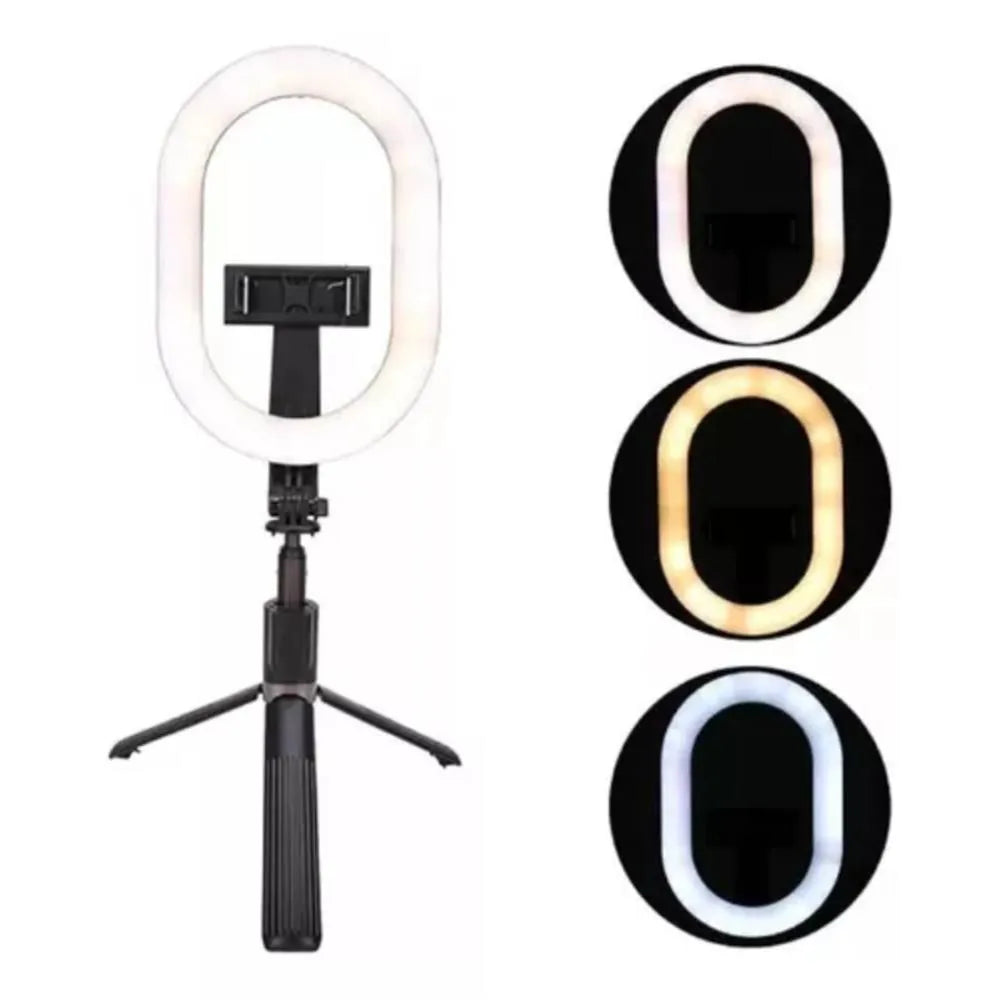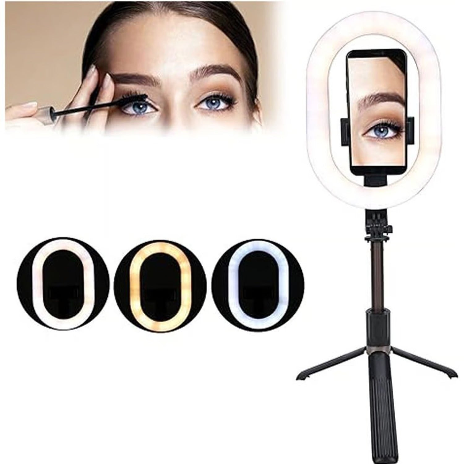 Características Destacadas:Iluminación Regulable: Dispone de 3 modos de iluminación de color: blanco, amarillo cálido y blanco cálido. Puedes ajustar libremente la temperatura de color para adaptarse a diferentes entornos y necesidades.Ideal para Selfies y Videos: Combina soporte para teléfono y luz de anillo en un diseño dos en uno. La luz suave y sin parpadeos protege tus ojos durante el uso prolongado. Perfecto para maquillaje, transmisiones en vivo, selfies, videochats y Vlogs.