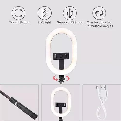 Compatibilidad Universal: Diseñado para ser compatible con teléfonos móviles, el palo selfie está hecho de aleación de aluminio resistente a la oxidación y estable. Sujeta firmemente tu teléfono para protegerlo de arañazos. El botón en el palo selfie te permite controlar el teléfono para tomar fotos.Soporte Giratorio: La cabeza de la lámpara ajustable te permite cambiar fácilmente el ángulo del soporte para teléfono, adaptándose a tus necesidades tanto en interiores como exteriores. Perfecto para maquillarte en condiciones de poca luz o capturar excelentes selfies.📐 Especificaciones:Material: Aleación de AluminioModos de Iluminación: Blanco, Amarillo Cálido, Blanco CálidoÁngulo Ajustable: Sí, varios grados de ajusteUso: Interior y ExteriorCompatibilidad: Teléfonos móvilesEste Aro de Luz Trípode A8 no solo mejora la calidad de tus fotos y videos, sino que también ofrece comodidad y facilidad de uso para tus necesidades de iluminación en cualquier situación. Perfecto para creadores de contenido, entusiastas del maquillaje y todos aquellos que buscan destacar en sus selfies y transmisiones en vivo. 🌟