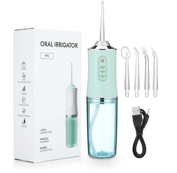 El Irrigador Bucal Portátil es un dispositivo de limpieza dental que ayuda a reducir eficazmente los residuos de alimentos, los gérmenes y la suciedad, mejorando la condición oral