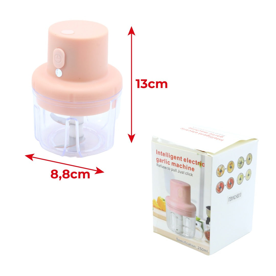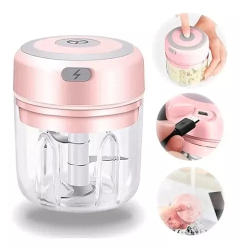 .Características-Color: rosa-Material: Metal y plástico- Capacidad nominal: 250ml-Voltaje de la batería: 3.7 V- Corriente nominal: 6A- Potencia nominal : 45W- Tensión nominal de entrada: 5V- Corriente de entrada nominal: 1A- Motor de alta resistencia,-Cuchillas reforzadas, seguras y duraderas -Hebilla magnética, fácil de instalar-Alta eficiencia eléctrica que ahorra tiempo-Se Puede enjuagar y limpiar para que la comida sea más seguraLista de embalaje1 x receptor1 x línea de potencia