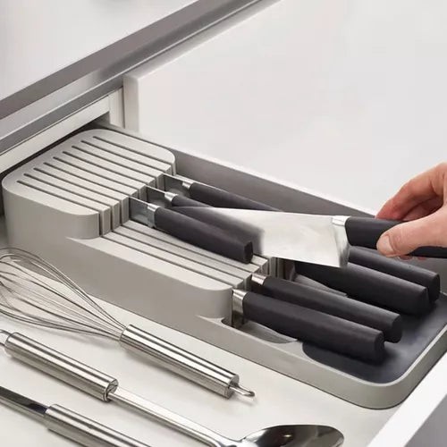 Organizador de cuchillos de dos pisos que combina funcionalidad y diseño en un solo producto. Con su estructura de plástico resistente, este organizador es perfecto para mantener tus cuchillos y cubiertos en orden y al alcance de la mano.Este modelo Compact 2 Tier Knife Organsier cuenta con 18 compartimentos, lo que te permite almacenar una amplia variedad de utensilios de cocina. Su profundidad de 40 cm lo hace ideal para cualquier tipo de cajón, optimizando el espacio y facilitando la organización de tus utensilios.La marca Joseph Joseph DUO es reconocida por su compromiso con la calidad y la innovación en productos para el hogar. Este organizador de cuchillos no es la excepción, ya que su diseño inteligente permite un fácil acceso a tus cuchillos, protegiéndolos al mismo tiempo de posibles daños.En resumen, el Joseph Duo es más que un simple organizador de cuchillos. Es una solución práctica y elegante para mantener tu cocina ordenada y tus utensilios de cocina en perfecto estado. No pierdas la oportunidad de mejorar tu experiencia culinaria con este producto esencial.