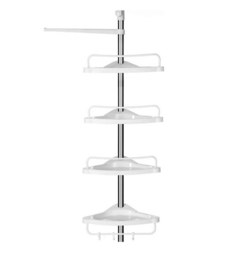 Cada estante tiene una barra, que se puede usar como percha junto con los ganchos debajo del estante para opciones de almacenamiento alternativas.- Riel de torre ajustable se puede girar 360 a cualquier lugar- 4 ganchos junto con la barra para colgar pueden almacenar la bola de baño y el gorro de ducha- Estanterías más amplias y profundas, base estable y fuerte, la hacen más segura y sujeta.- Color disponible: blanco- Altura de barra es regulable, 1 metro hasta 3 metros- Medida de estante es 24cm x 24cm son 4 estante, 1 colgador- No necesita tornillo para instalación.- Es Firme estable.- Cada estante puede aguantar 4kg.- Pie antideslizante con goma blanda