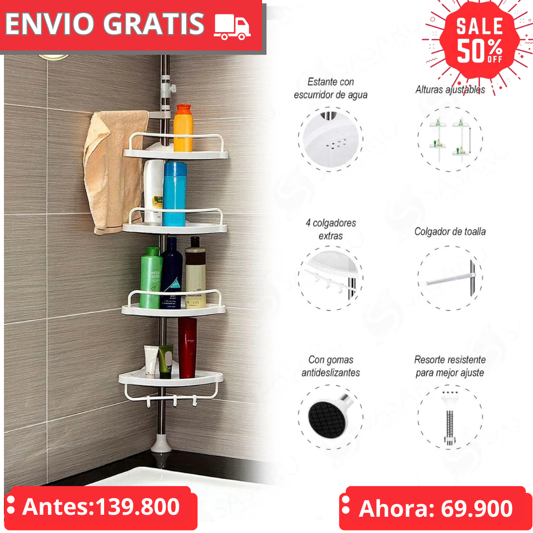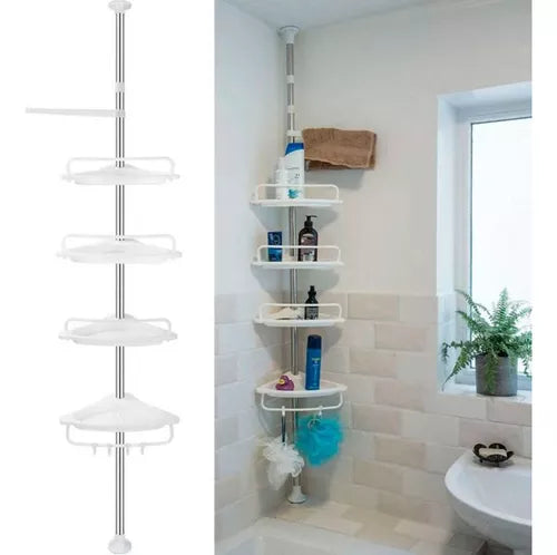 Organizador Esquinero 2.60mts Para Baño Práctico organizador de baño en esquinero. Hecho de acero inoxidable y plástico ABS, resistente y a prueba de óxido. Las estanterías reforzadas aseguran mayor capacidad de carga y durabilidad.
