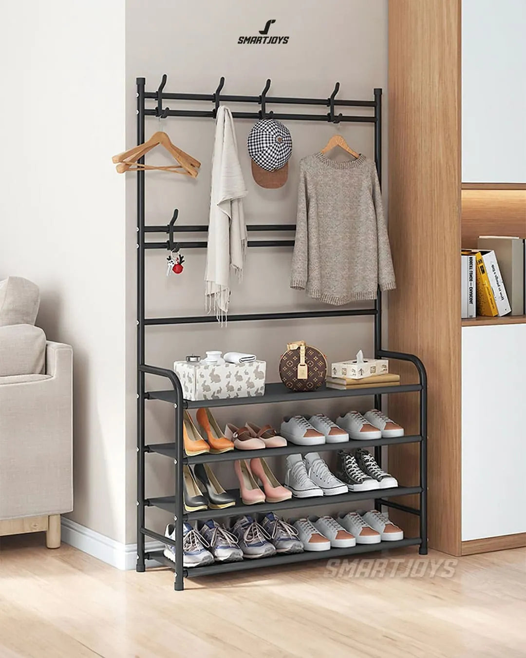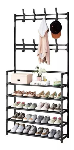 El Perchero Multifuncional con Zapatero de 5 niveles es el complemento perfecto para mantener tu hogar organizado y con estilo. Con su elegante color negro y su diseño moderno, este perchero se adapta a cualquier tipo de decoración.