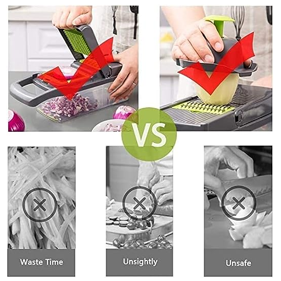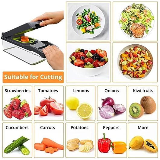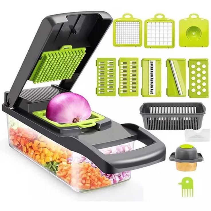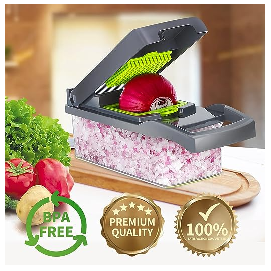 Producto de uso casero y delicado. Nicer Dicer para la ensalada perfecta en tu cocina, el secreto de los grandes jefescon este espectacular utensilio para cocina, usted podrá preparar las recetas de su preferencia rápidamente y con menos esfuerzo.Los cortes Dicer más, rala, Pica y pica los más variados alimentos: cebollas, pepinos, tomates, patatas, frutas en general, champiñones, queso, etc
