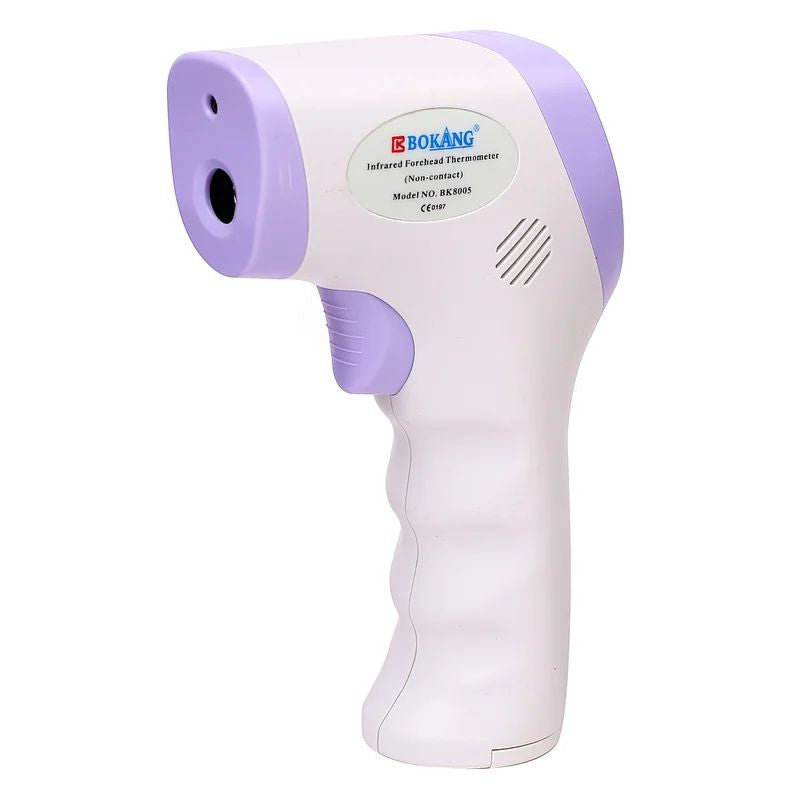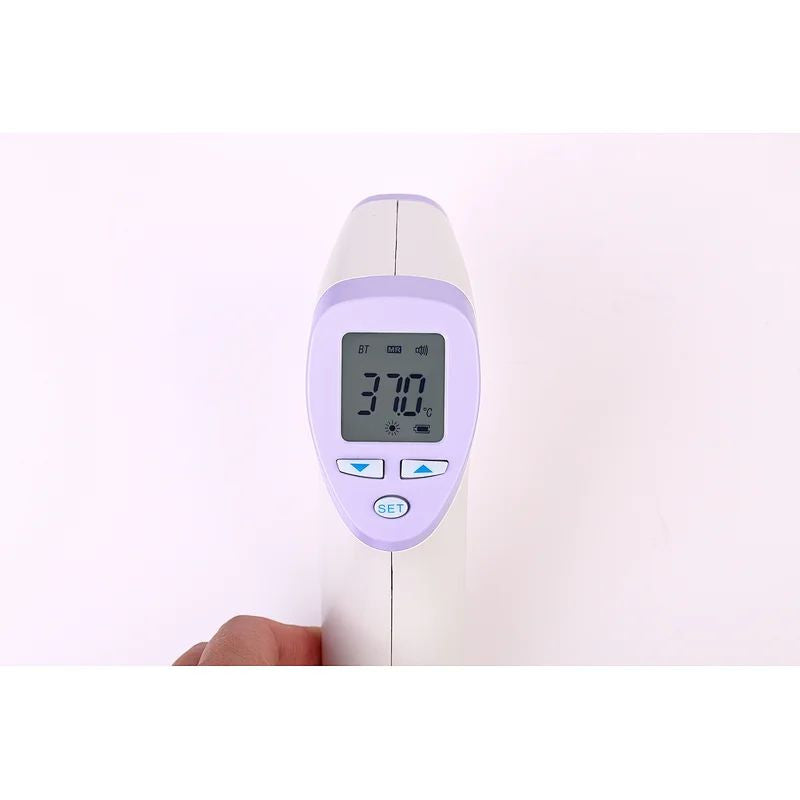 Termómetro digital sin contacto con pantalla LCD de medición, sensorinfrarrojo, botones de ajuste y de inicio de medición.Este dispositivo se utiliza para tomar la temperatura del cuerpo con rango de lectura digital.